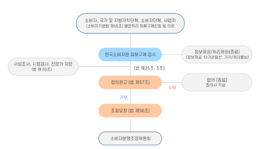 - 소비자분쟁조정위원회에 준하는 분쟁조정기구에 피해구제가 신청되어 있거나 피해구제절차를 거친 경우.