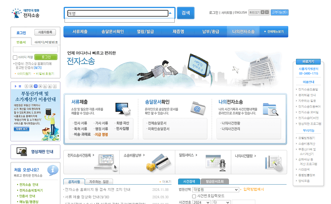 (1) 대한민국법원전자소송 사이트에 접속한 후 로그인을 합니다.