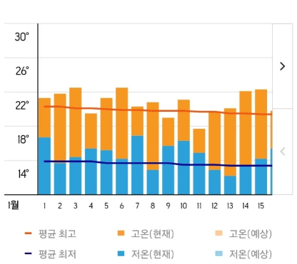 1월은 미야코지마에서 가장 추운 달이지만, 한국의 겨울과 비교하면 매우 온화합니다. 평균 기온이 16℃에서 21℃ 정도로 우리나라의 따뜻한 가을과 유사합니다. 아침저녁으로는 선선하므로 가벼운 외투가 필요할 수 있습니다. 간혹 비가 내리는 경우가 있지만 금세 그쳐 대체로 맑은 날씨를 즐길 수 있습니다.