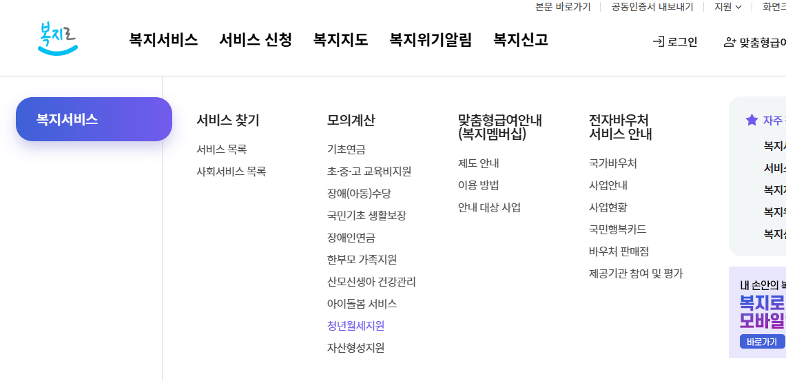 복지로 홈페이지(https://www.bokjiro.go.kr/ssis-tbu/index.do) 또는 앱을 통해 간편하게 신청이 가능합니다. 복지로 사이트에서는 모의 계산을 통해 본인이 지원 대상에 해당하는지 확인할 수 있으니, 신청 전 확인해 보시는 것을 추천합니다.