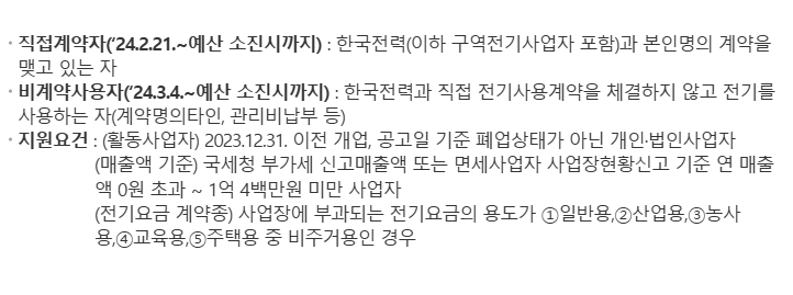 소상공인 전기요금 지원을 받기 위해서는 전기 사용 계약 형태에 따라 요건이 다릅니다.