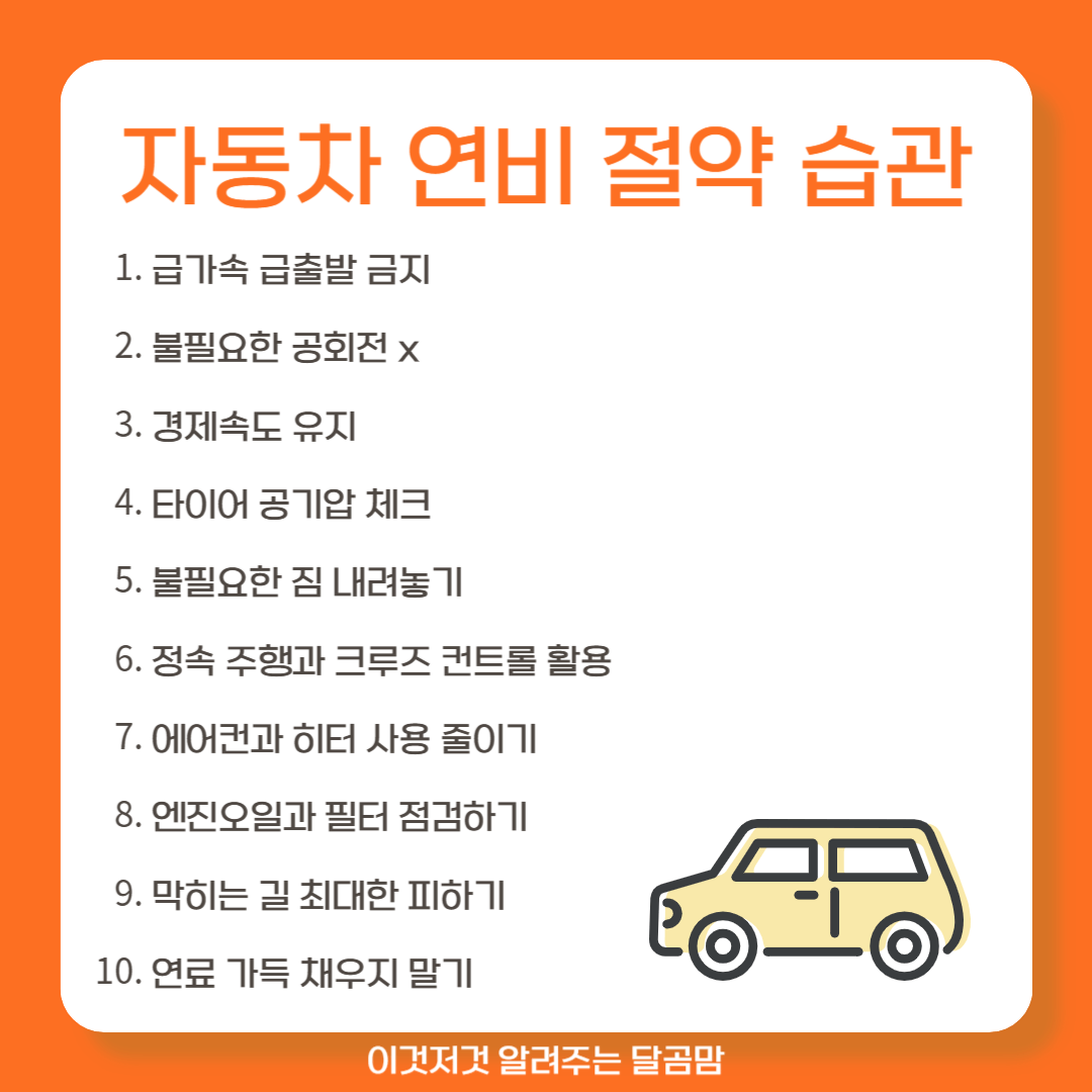 지금까지 연비 절약하는 방법 10가지에 대해 알아봤습니다.