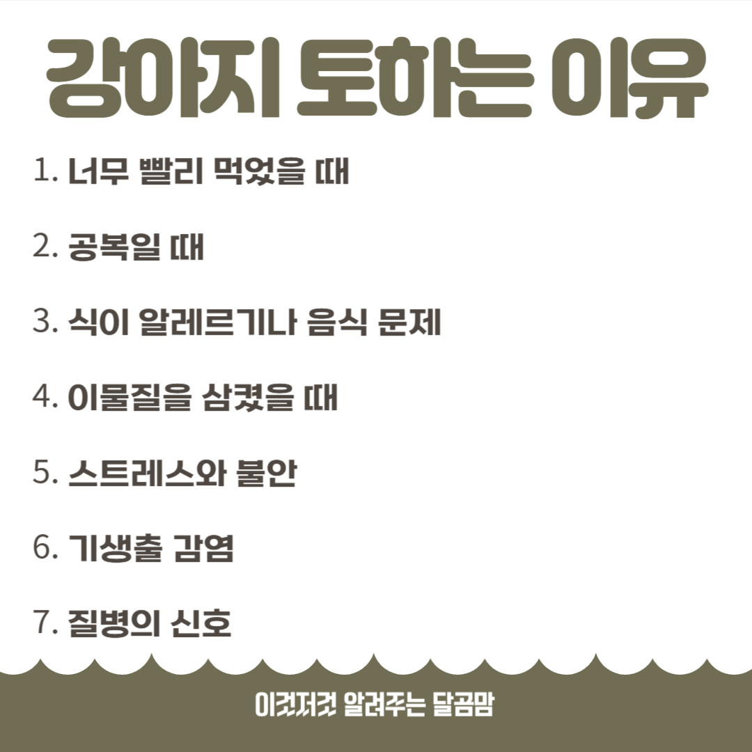 강아지를 키우시는 분들이라면 우리 강아지가 토를 하는 걸 본 적이 있으실 거예요. 특히 강아지를 처음 키우는 분들은 많이 놀라실 텐데요. "밥을 너무 급하게 먹었나?", "어디 아픈 건가?" 걱정이 밀려올 겁니다. 하지만 강아지가 토하는 것은 흔한 일이며, 대부분의 경우 가벼운 원인일 수 있습니다. 그러나 어떤 경우에는 건강 이상을 알리는 신호일 수도 있다는 사실을 아시나요? 오늘은 강아지가 토하는 이유와 함께 토 색깔에 따른 의미를 알아보겠습니다.