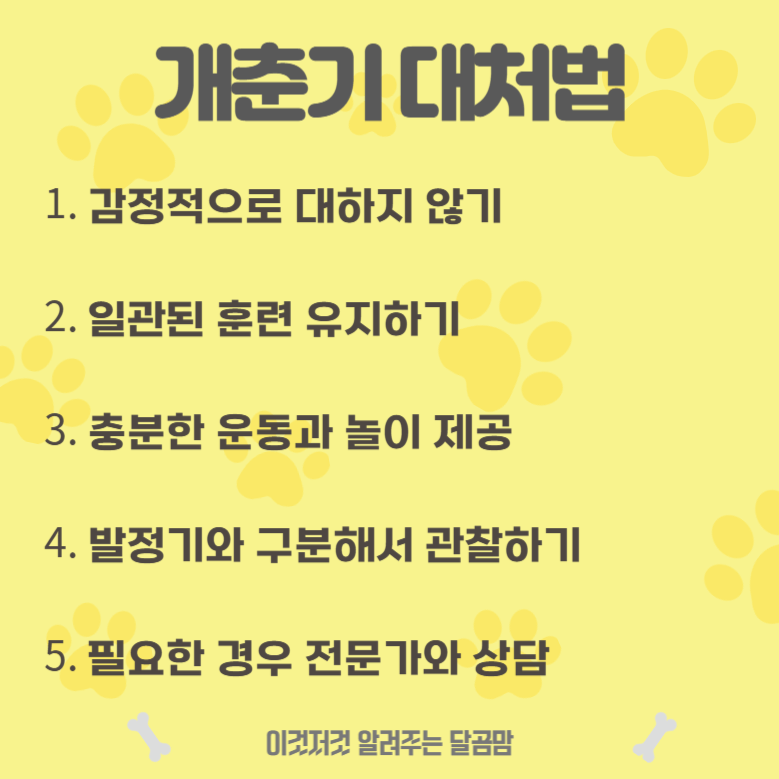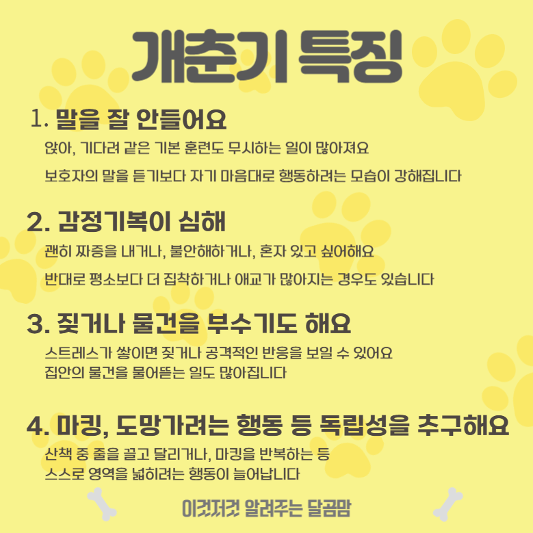 지금까지 강아지 개춘기 특징과 대처방법 등에 대해 알아봤습니다.